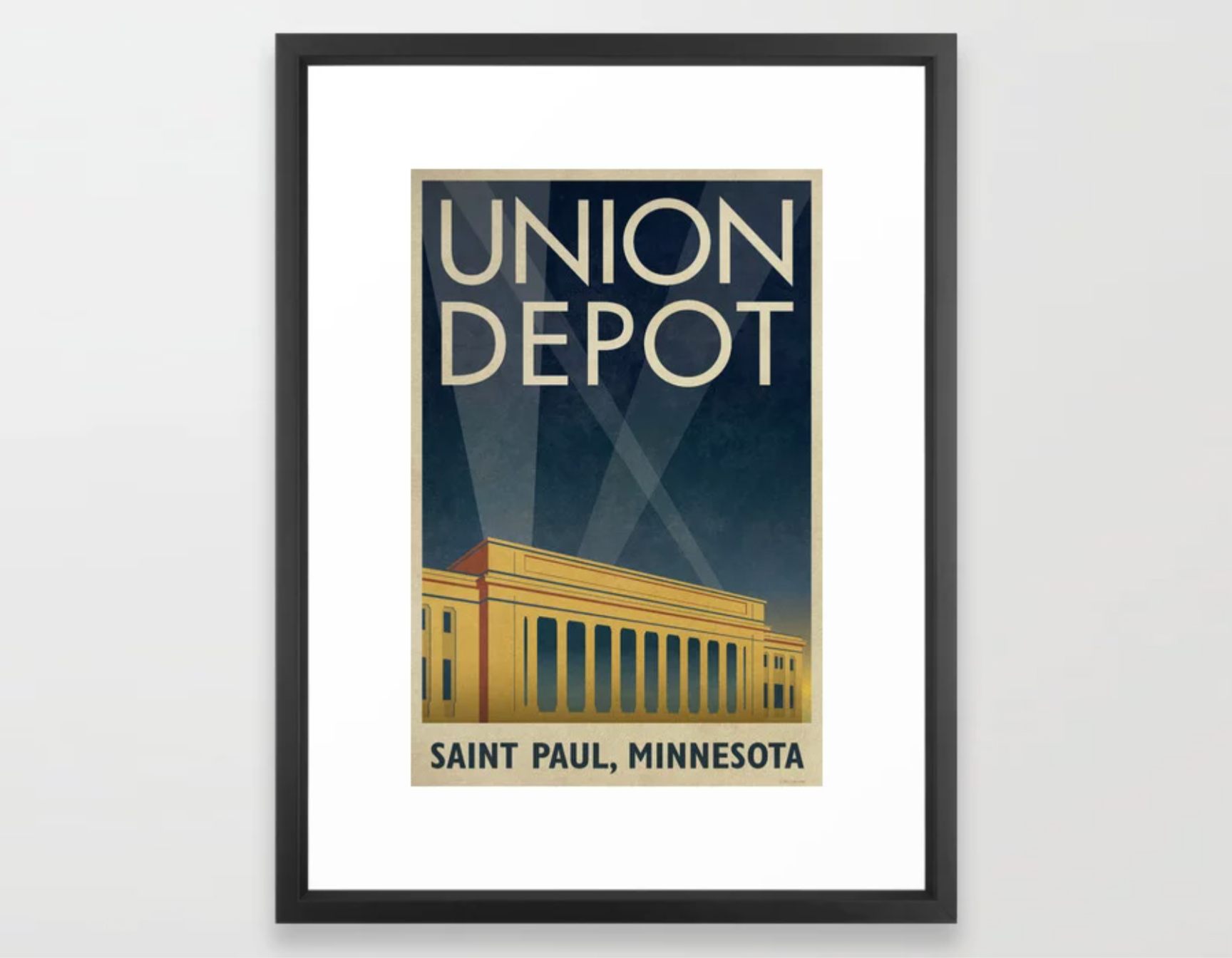 This was designed as a postcard to commemorate the grand re-opening of the renovated Union Depot in lowertown St. Paul. Originally completed in 1923, the building is being reborn as a modern transit hub with bus, light-rail transit and Amtrak service. The building will serve as a regional transit hub for decades to come.